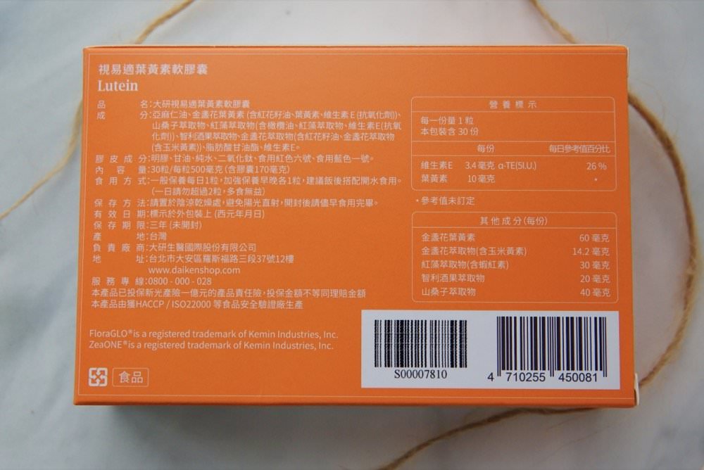 分享我們吃過成份非常好的「 大研生醫視易適葉黃素 」