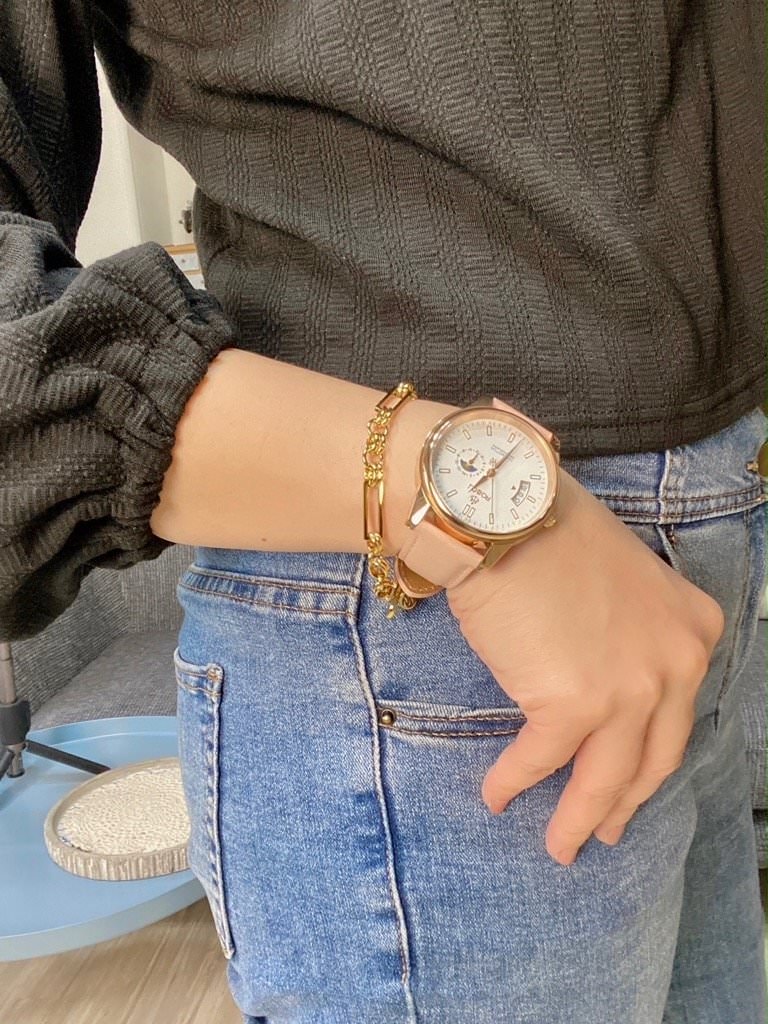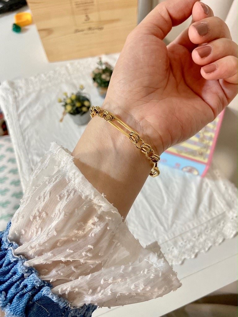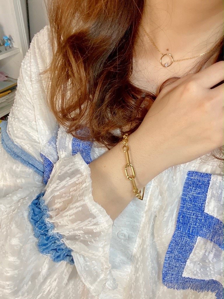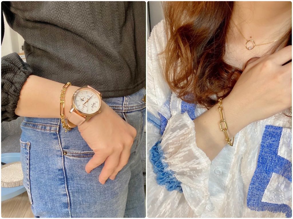 ▼Link 手鍊實品比想像中的輕一些,特別適合搭配牛仔褲這種簡約率性的感覺!