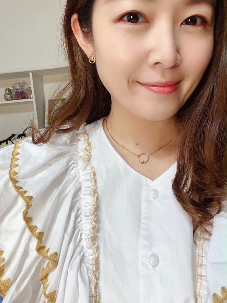 ▼宇宙項鍊與耳環這種簡約又有亮點的設計,非常好搭配衣服!我的穿著走不設限的路線,喜歡簡約舒適、有時優雅、偶爾也會出席隆重的場合,搭配金色通常會有比較融洽的感覺。