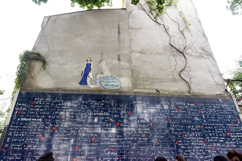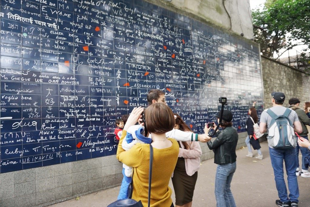 ▼ 吃完麥當勞沒多久慢慢散步來到「蒙馬特愛牆 Le mur des je t’aime」,愛牆是由超過250種語言以及方言的「我愛你」組合而成的磁磚牆面,也是蒙馬特的熱門拍照打卡景點。
