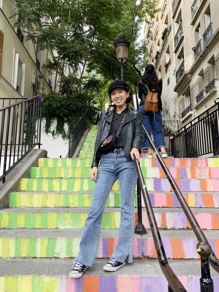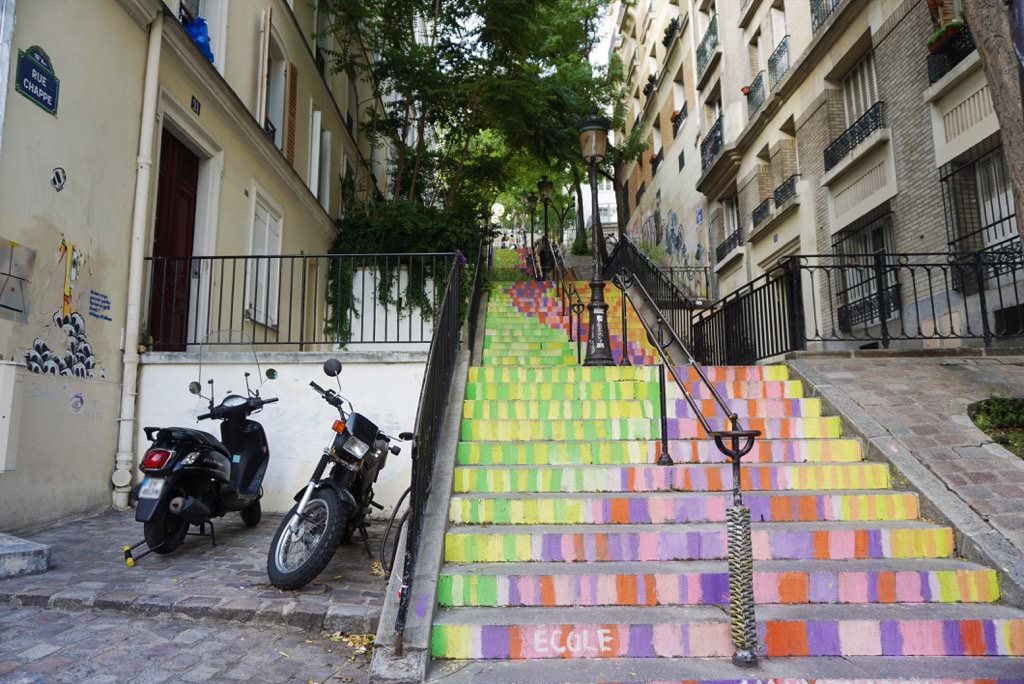 ▼ 接著來到彩繪階梯拍照,這邊不是知名景點,是妹妹看巴黎人在這拍照打卡,所以我們就順便走這條往聖心堂前進:P