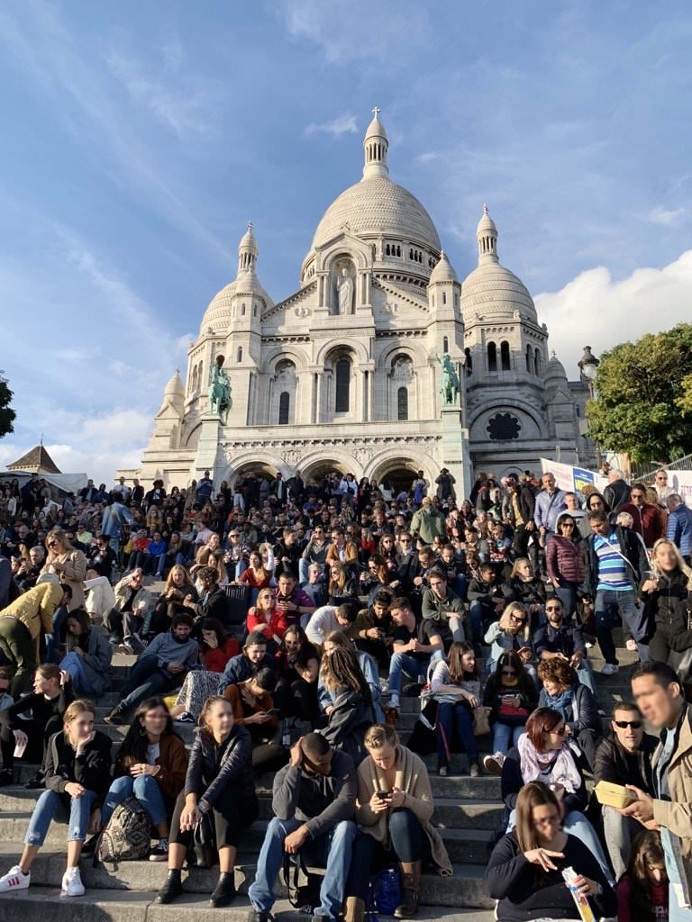 「聖心堂」是蒙馬特的必去景點,因為聖心堂在蒙馬特的最高處,加上蒙馬特本身就是山丘,所以石板階梯與小坡道超級多,當天記得穿好走的鞋子。
