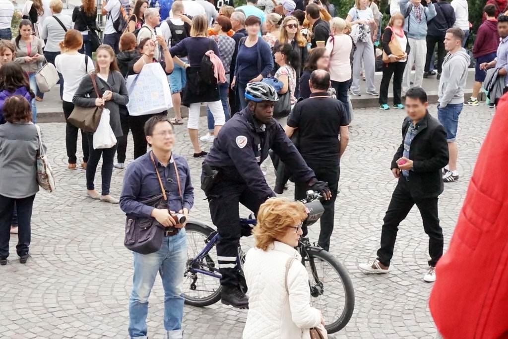 這是2015年去的時候看到警察騎單車巡邏,2015與2019的巴黎,治安感覺上有改善一點點。