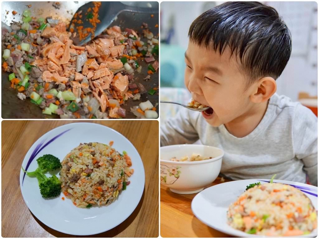 ▼ 鮭魚炒飯是小孩接受度高的簡單料理,營養豐富又美味!
