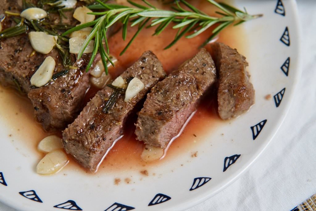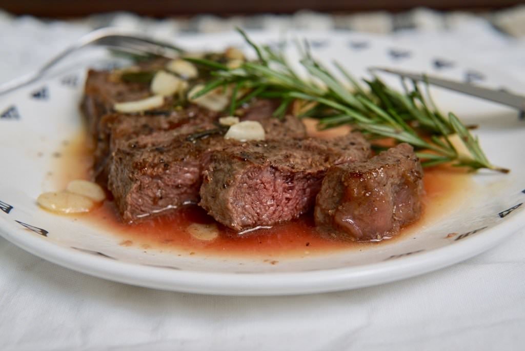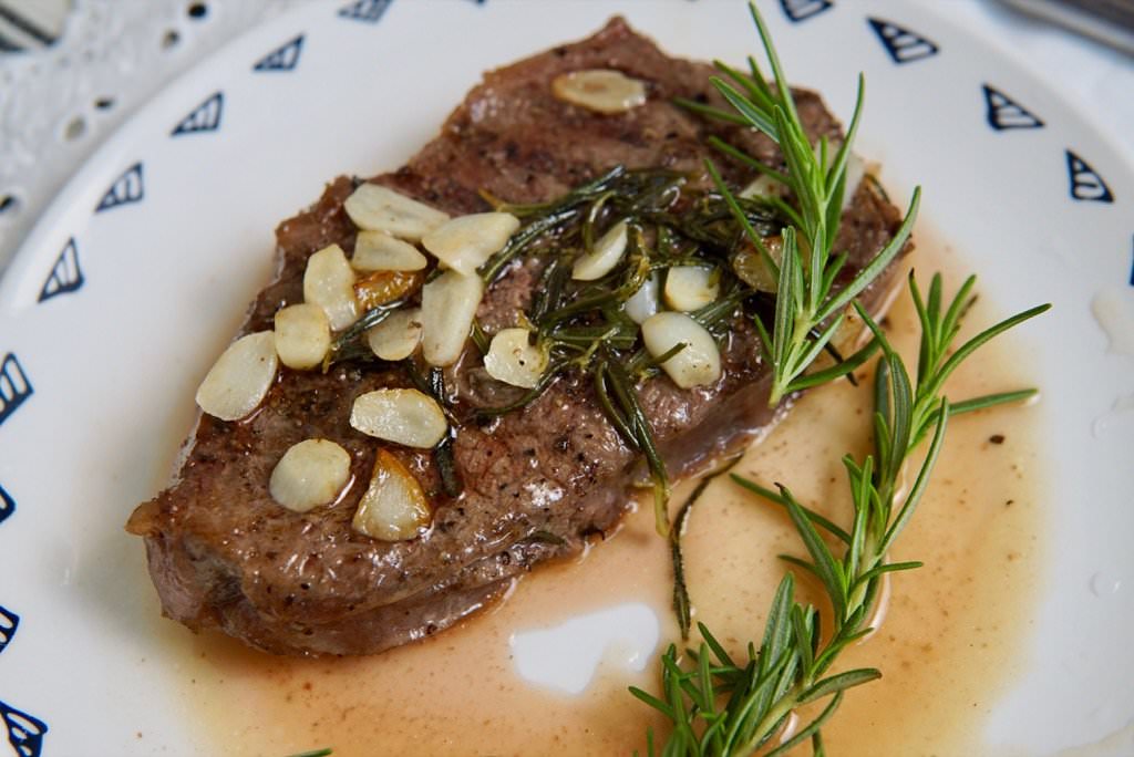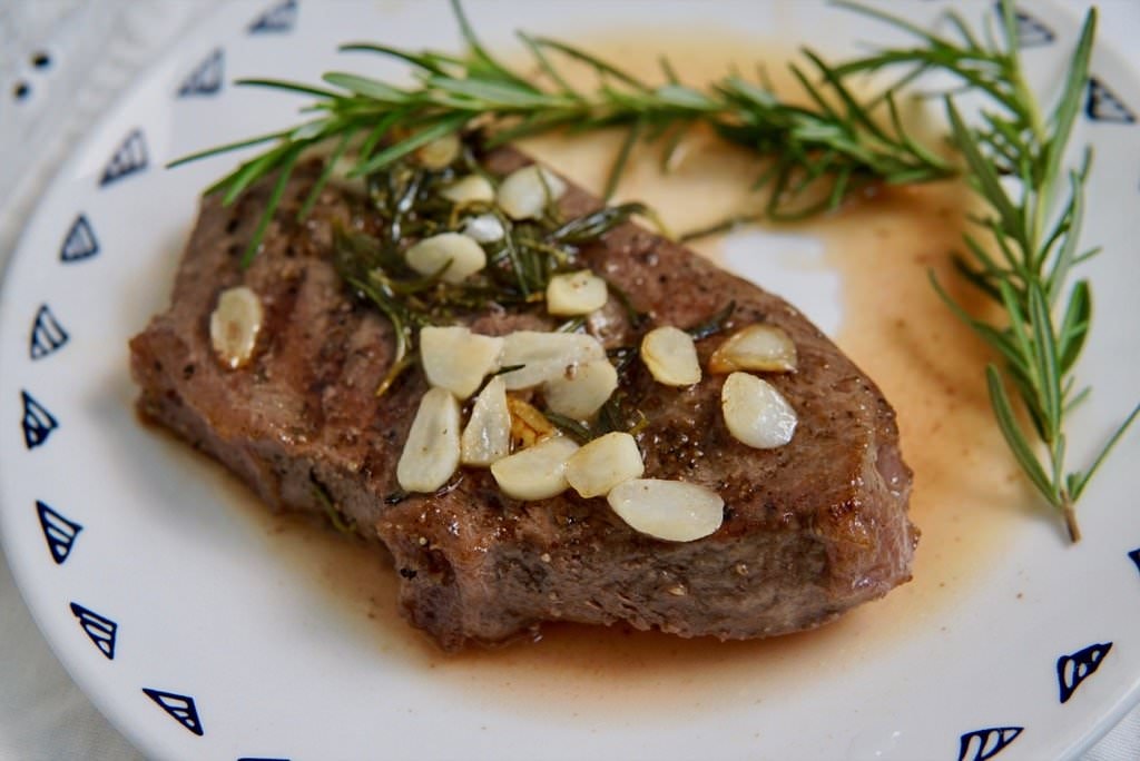 食譜超簡單!食材只要準備:牛排 x 蒜頭數瓣 x 奶油 x 迷迭香數根 (我們家有種迷迭香,建議愛吃牛排的人可以跟我們一樣直接買苗回家種,實用又療癒!)