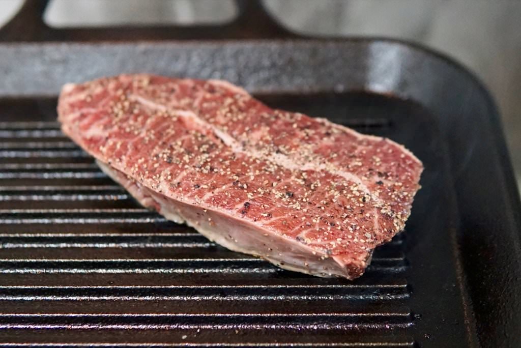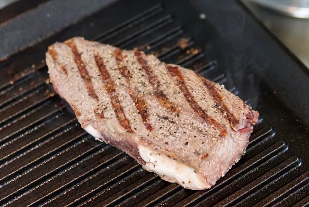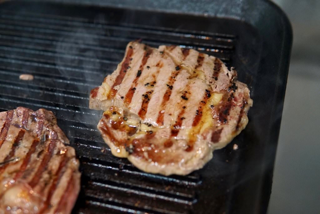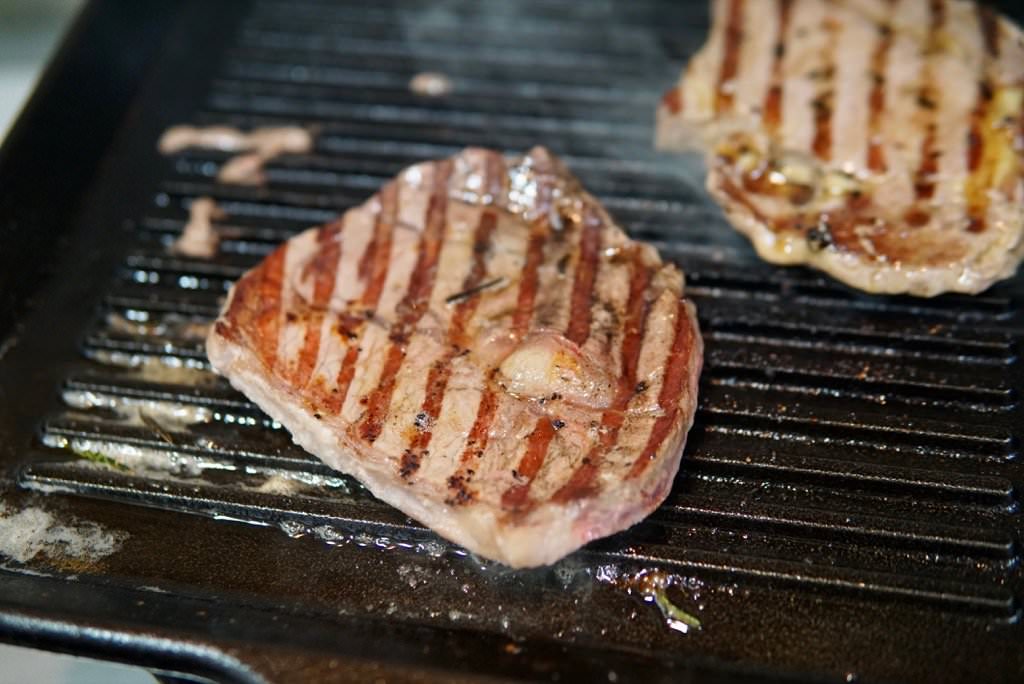 ▼一樣用鑄鐵牛排煎鍋煎,這兩片比較薄,建議不要煎太久,吃起來比較嫩喔!
