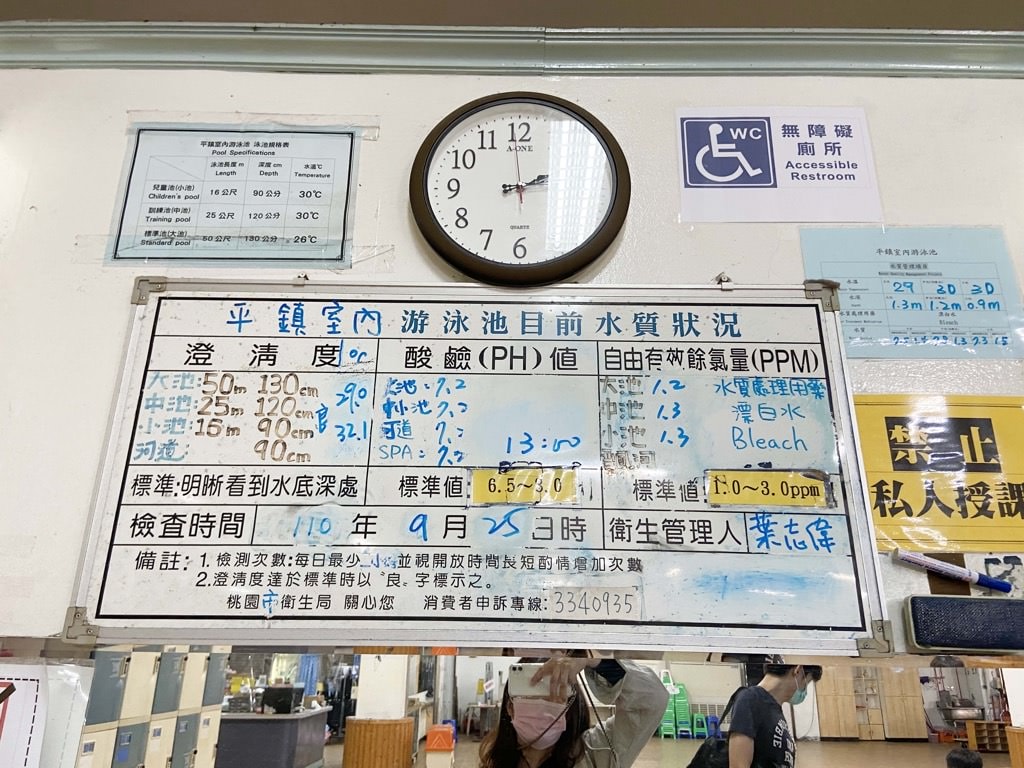 ▼ 門口有詳細的泳池消毒時間,目前每天8:30、12:00、17:00會消毒半小時,