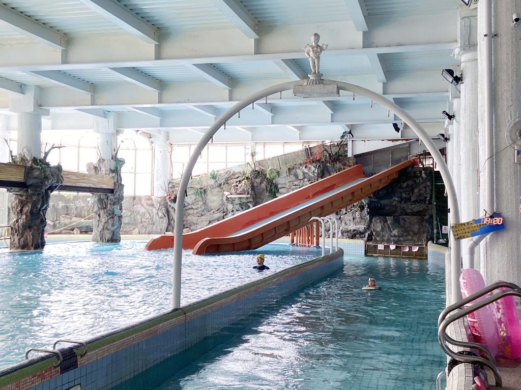 平鎮室內溫水游泳池|兒童戲水池.漂漂河.人造浪.滑水道.按摩池.冷熱池應有盡有|彷彿進入時光隧道般的入口