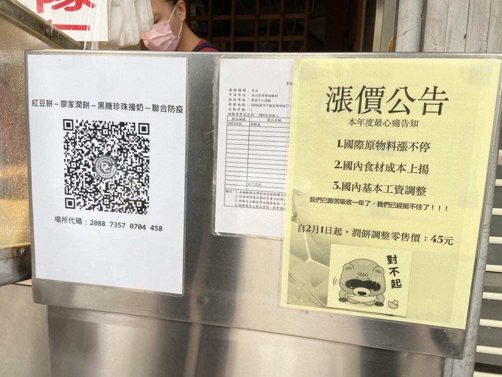潤餅的價格因應物價調漲,