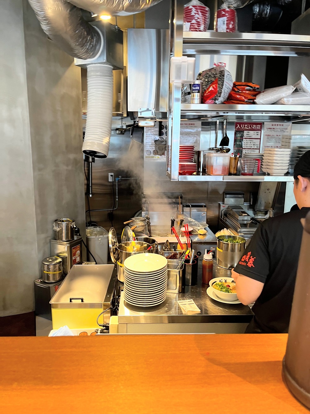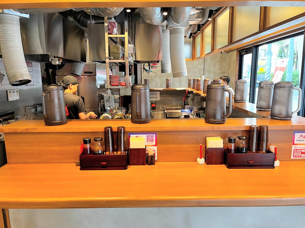 ▼暖暮拉麵首里店內部空間跟牧志店有點類似,直接坐在吧台座位看的到廚師們在廚房煮麵,位置空間不大,大約容納10多個人就客滿