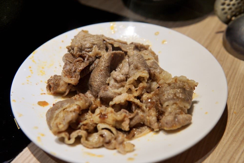 雪花牛腹肉油脂豐富,下鍋輕涮肉質較嫩,