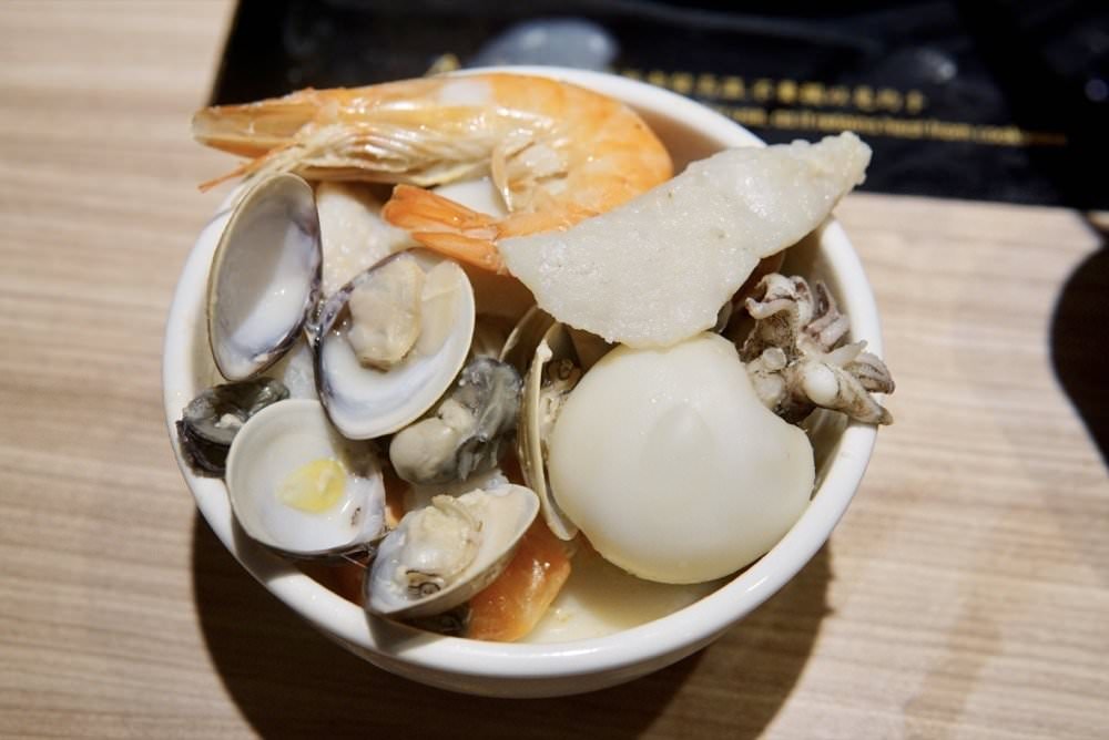 還有「海の幸」-裡頭有小白蝦、蛤蜊、巴沙魚、小花枝與鮮蚵!