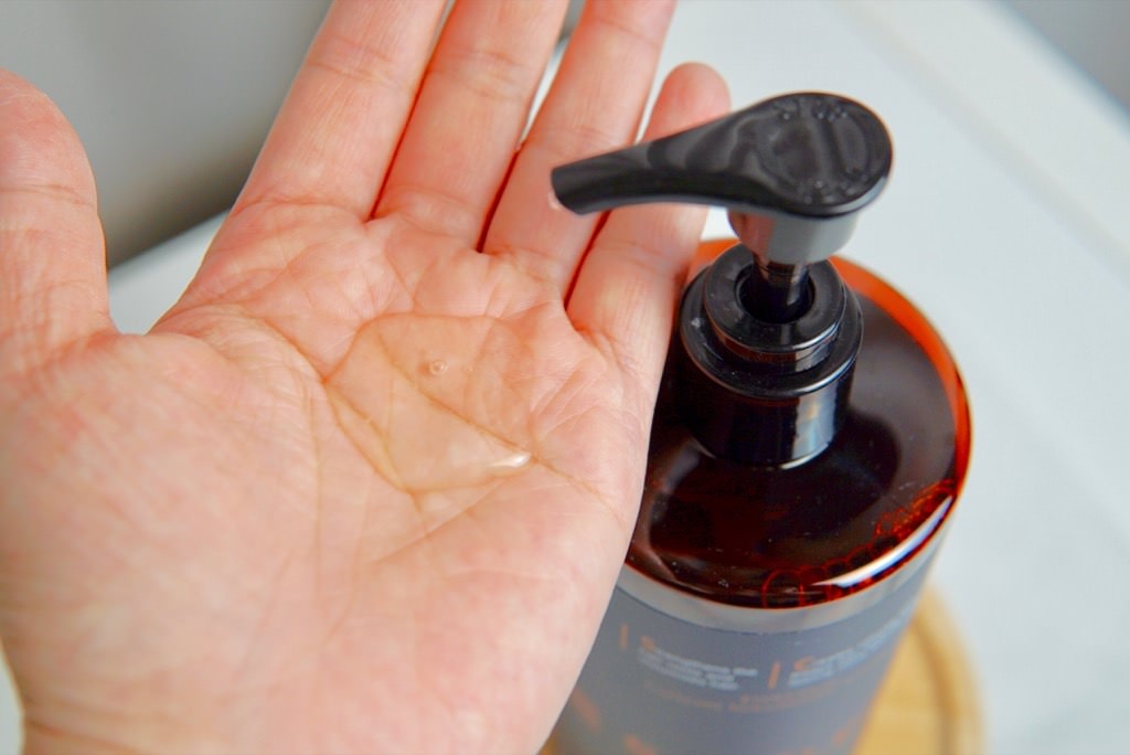 使用質進化咖啡因豐盈健髮洗髮精只需加一點點水,
