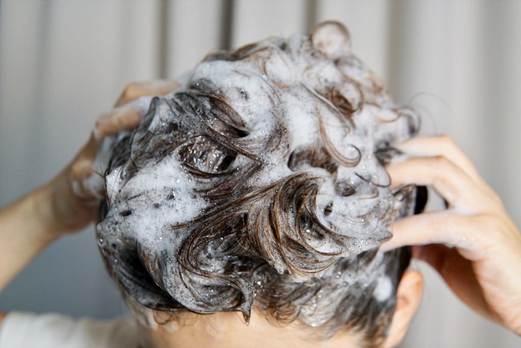 4. 第一次洗淨,洗去頭髮上的髒污,同時輕輕按摩頭皮後沖掉