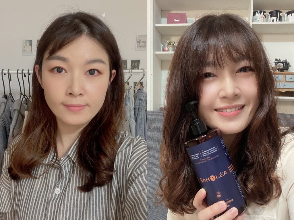 下圖右是連續使用森歐黎漾質進化咖啡因系列兩週後,洗頭後正常整理就是這種蓬鬆感!