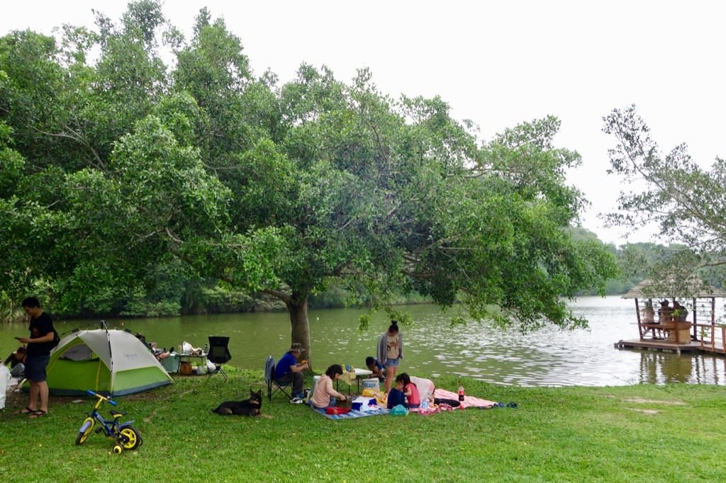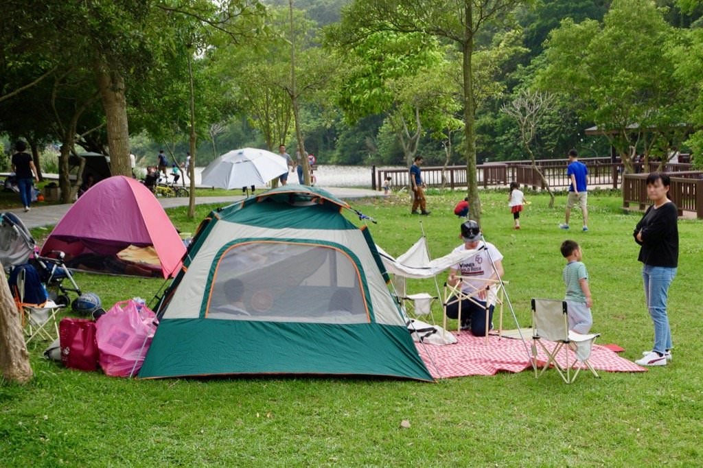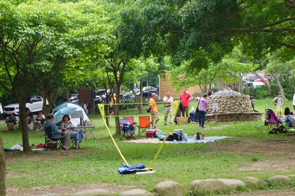 ▼ 週末下午來,已經好多人在這裡駐點紮營了呢! 這邊草地夠大,許多家庭直接帶野餐墊或是遮陽帳棚來,小孩就在帳篷旁玩耍,大人可以好好放鬆一下。