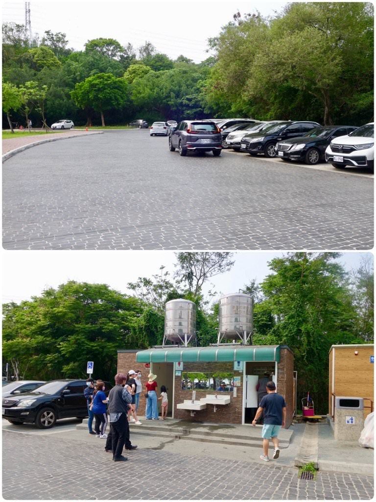 ▼ 公園內也有停車場,但停車位置少常客滿,停車場旁就是廁所,這的女廁只有四間 (前面公廁兩間,小溪旁公廁兩間,共四間),假日人多想上廁所要提早來排隊喔😂