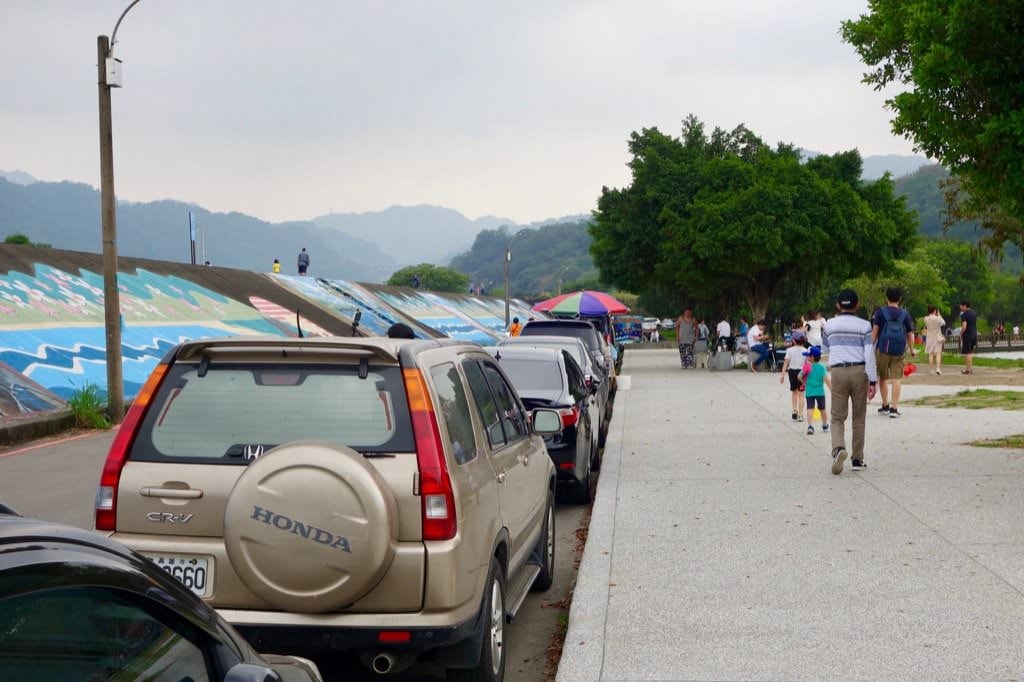 ▼ 開車帶小孩來龍潭三坑自然生態公園,汽車可停公園前馬路旁的白線,紅線千萬不要停喔!當天有看到警察來趕人與開罰單。公園旁也有Ubike站,自行車一族也可以把這列為景點。