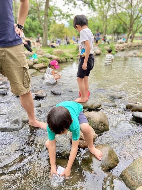 ▼ 我們是四月初去的,當天剛好太陽很大,來這戲水的小孩也不少,夏天來玩水記得帶一些戲水用具如水盆、網子等等,小孩會玩得更盡興唷!當天好多小朋友來跟希瀚借盛水的用具~戲水道具大受歡迎啊!