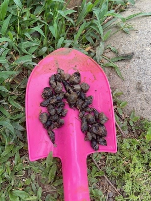 ▼ 溪水裡也有福壽螺,已經跟兩隻說不要抓,還是抓了一堆,媽媽看了覺得很胎哥誒😂,小溪流裡還有少少的迷你蝦子,最後都叫他們放生回去,盡量不要破壞自然生態喔^^