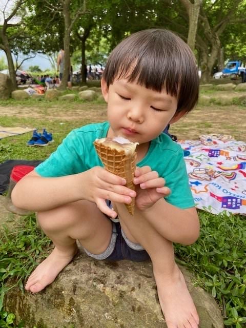 ▼ 洗好手吃阿公買的古早味吧逋~兩兄弟玩得超開心的!