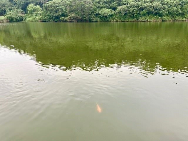 ▼ 戲水時間大約1個多小時,回程到湖上的涼亭看看,湖裡頭其實有很多魚呢!!