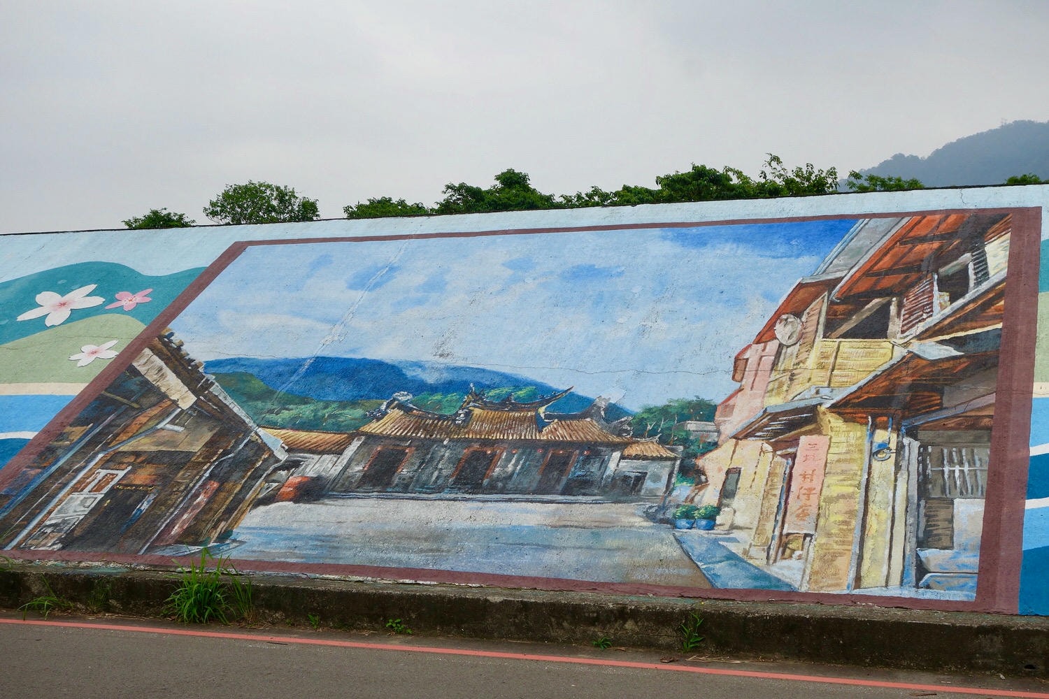 ▼ 旁邊就是大漢溪堤防道,上頭還有復古彩繪,可以邊走邊欣賞