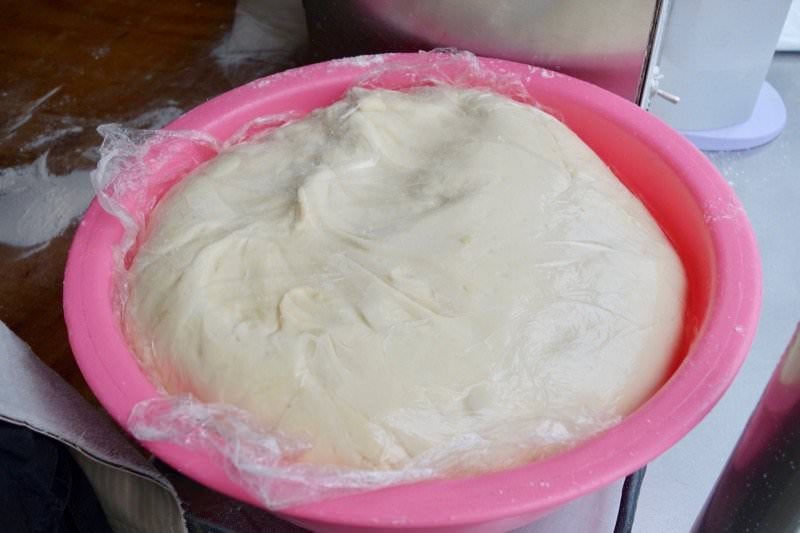 ▼整藍蔥油餅的餅皮,現桿加入蔥花直接下鍋!