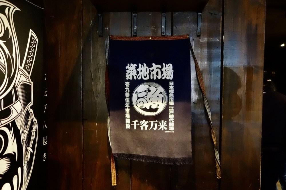 ▼武田信玄從店名到店內風格都有濃濃的日本風味,一進門就看到築地市場的旗幟與各種日本小物。