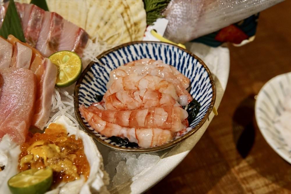 當天上的刺身總共有四種:野生紅甘、挪威鮭魚、黑鮪魚大腹、宜蘭胭脂蝦,