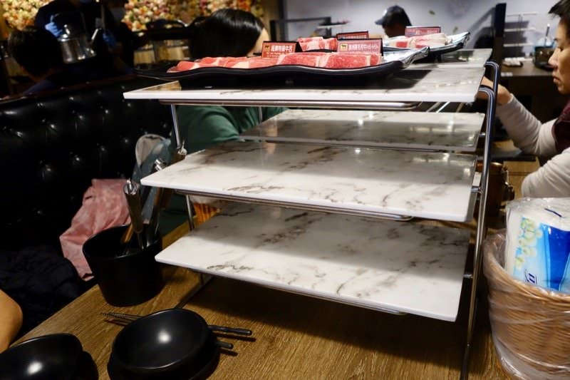 ▼還有大理石紋的疊肉盤,不怕點到桌面放不下