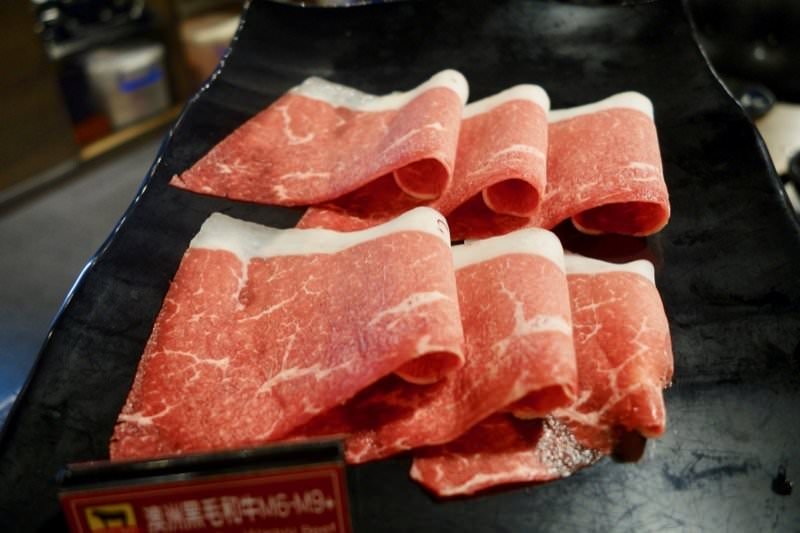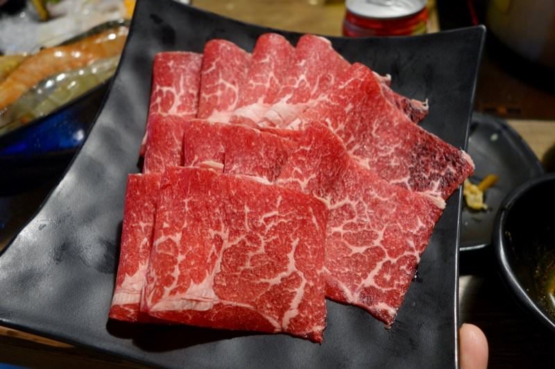 Choice牛五花也很優,雪花分佈漂亮,吃起來也很鮮甜,安格斯黑牛則是比較有嚼勁,澳洲黑毛和牛不小心煮太熟有點韌,涮到五分熟應該更好吃~