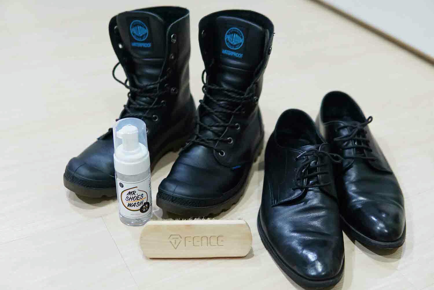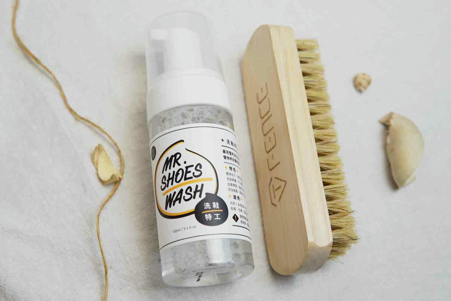 少不了各個材質鞋靴都可使用的「 Mr. SHOES WASH |洗鞋特工_清潔保養雙效慕斯 (含鬃毛刷) 」