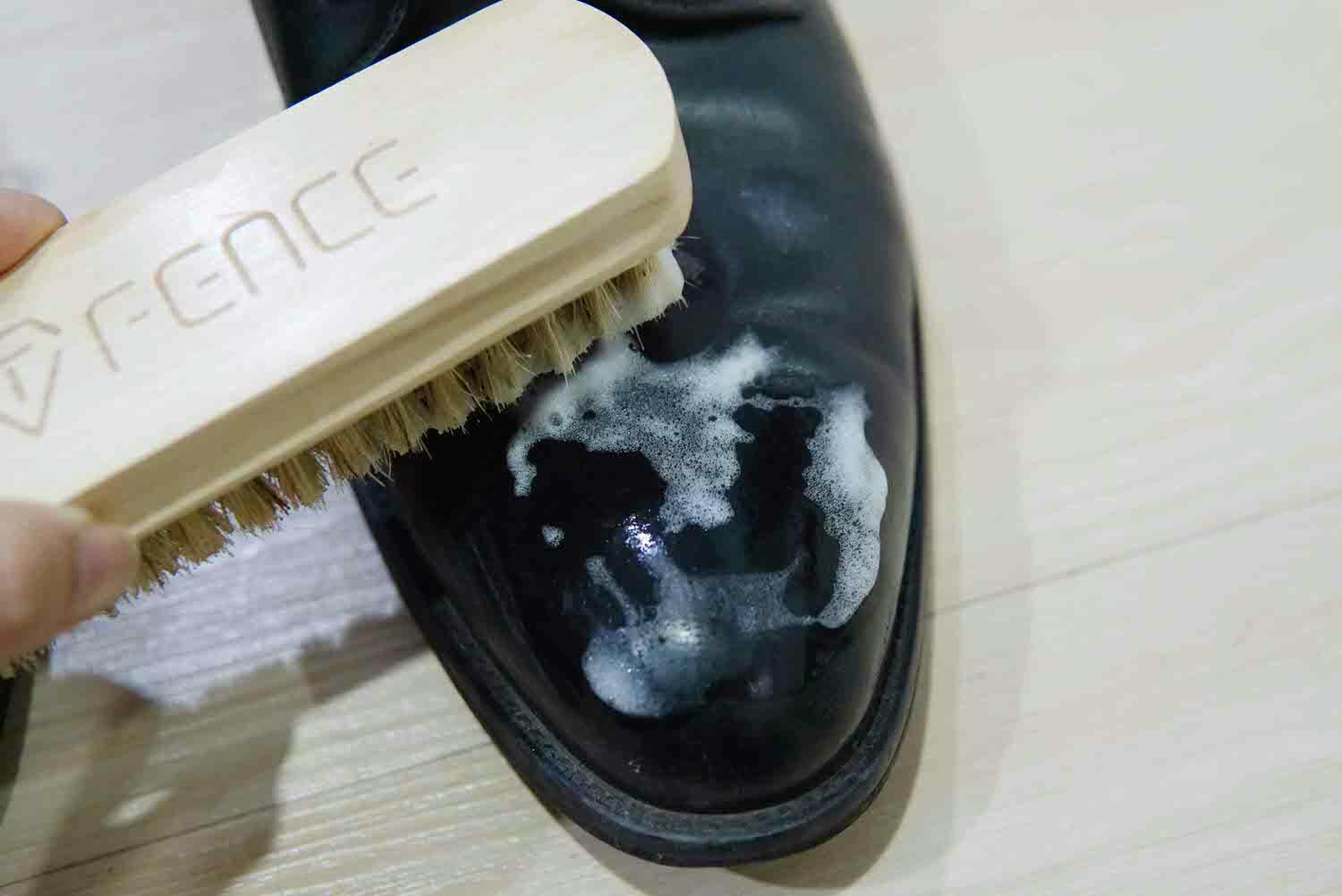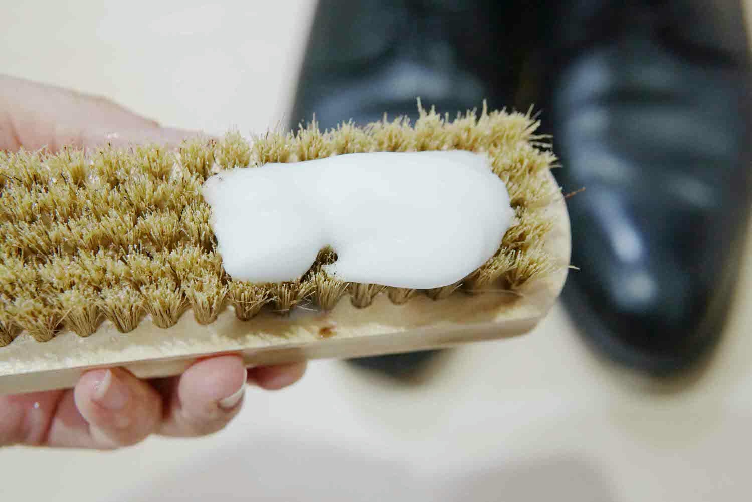使用洗鞋特工+專用豬鬃毛刷,