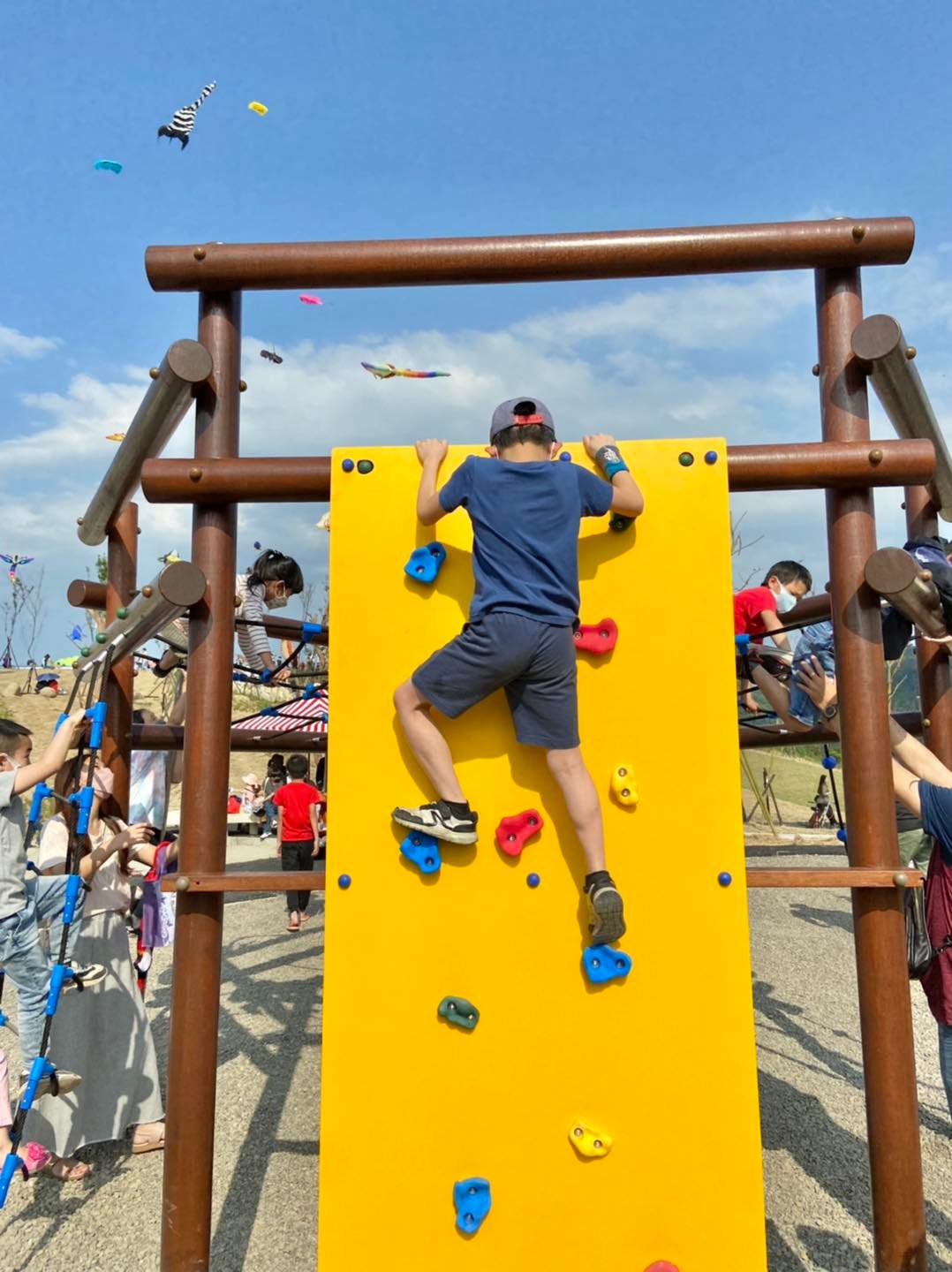 現場童趣風箏滿天飛,還有超大溜滑梯、 風動藝術裝置、礫石原野、原木遊戲場及地景滑草區!