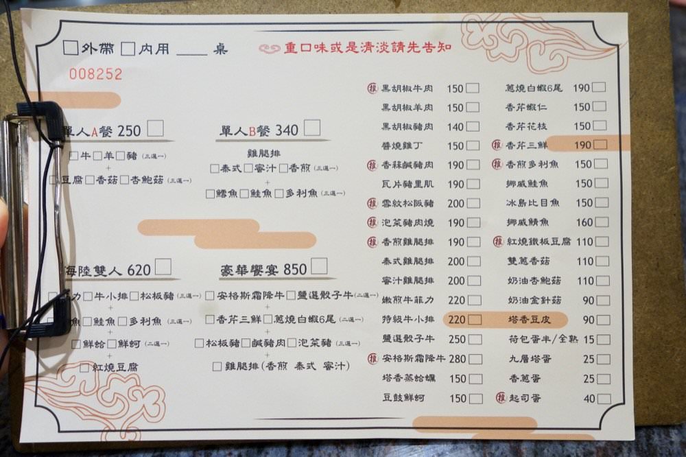 另外還有海陸雙人套餐$620、豪華饗宴$850,