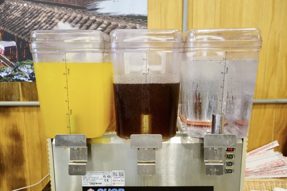 飲料有柳橙汁、冬瓜茶、冰水,飲料都不錯喝,