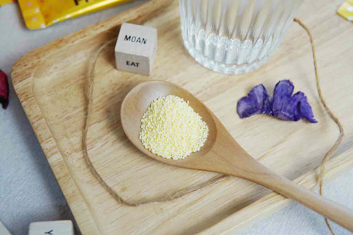 每一包上面都有清楚的製造日期,打開之後是淡淡香香的淺黃色小顆粒,