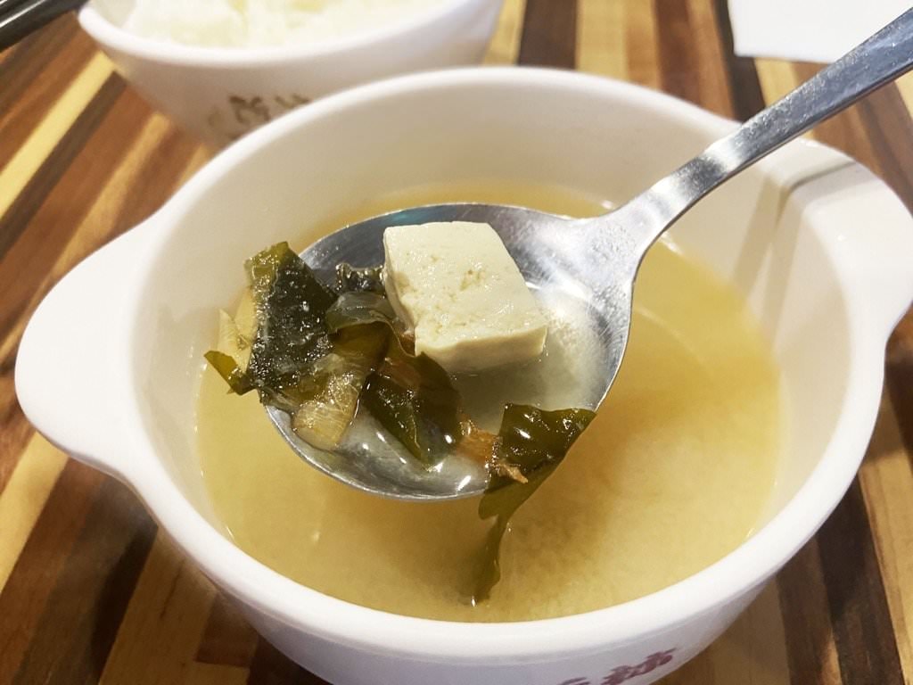▼ 湯是味增豆腐海帶湯,用料很大方,每一湯匙都盛得到料,湯也很好喝,味道鹹中帶點淡淡的鮮甜~