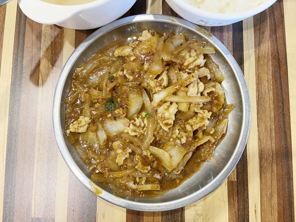 ▼ 接著上主餐,商業午餐(豬肉) $89,洋蔥超級多!剛好我很愛吃洋蔥~看了都愛心眼出現!