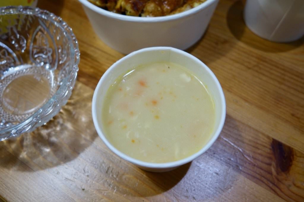 ▼免費附贈的玉米濃湯紅蘿蔔、蛋花、火腿丁都還滿豐富,勾芡的剛剛好,調味也很好喝
